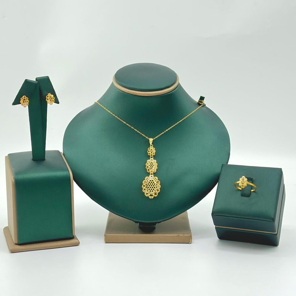 انعشي روحك بجمال الصحراء مع أزهار الصحراء، نصف طقم ذهب عيار 21 يضفي على إطلالتك لمسة من الرقة والجمال✨