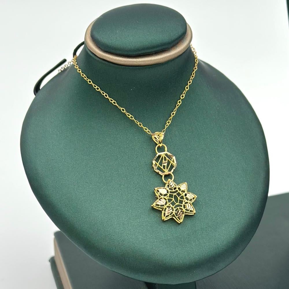 إن اللمعان الذهبي الرائع الذي يتمتع به نصف طقم الذهب عيار 21 يجذب الأنظار ويعكس تألقه الفريد. يتلألأ الذهب الخالص بجماله المتلألئ تحت أشعة الشمس والإضاءة، مما يضفي على الطقم سحرًا لا يقاوم.