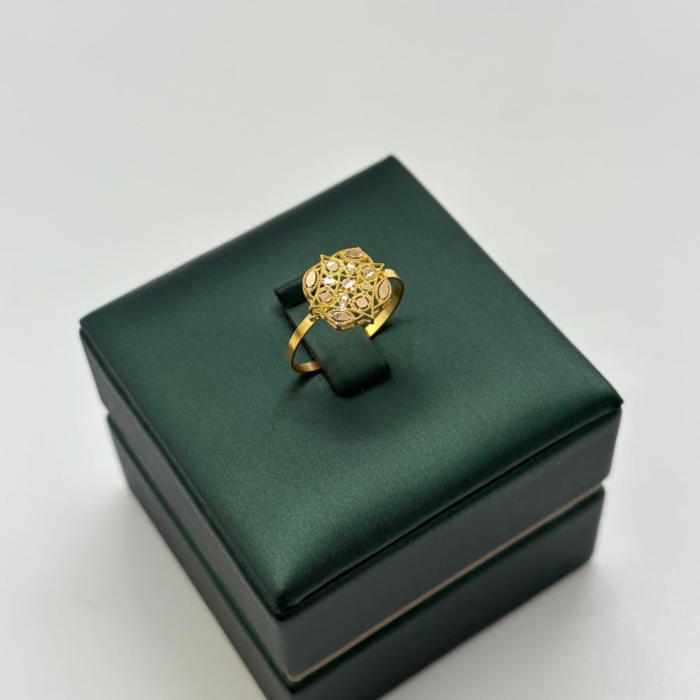 إن اللمعان الذهبي الرائع الذي يتمتع به نصف طقم الذهب عيار 21 يجذب الأنظار ويعكس تألقه الفريد. يتلألأ الذهب الخالص بجماله المتلألئ تحت أشعة الشمس والإضاءة، مما يضفي على الطقم سحرًا لا يقاوم.