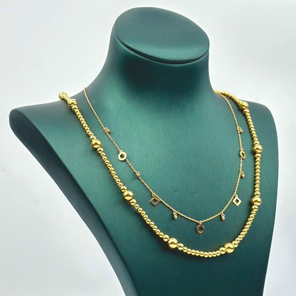 أضيفي لمسة فاخرة من التألق إلى إطلالتك مع هذه التنسيقات الراقية من عقدين ذهب عيار 21، صمما بعناية ليكمّلا بعضهما بتناغم مثالي. يجمع التصميم بين البساطة والفخامة، مما يجعله الخيار الأمثل لكل امرأة تبحث عن أناقة يومية أو إطلالة مميزة للمناسبات.