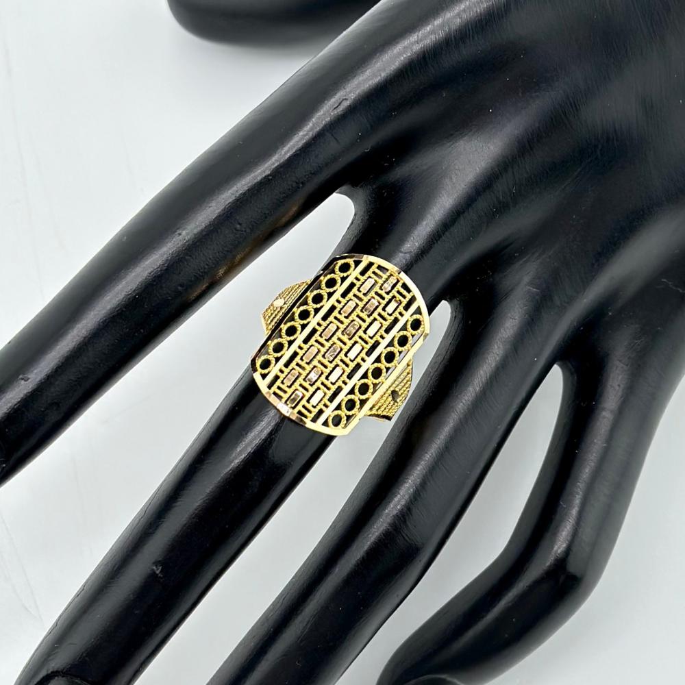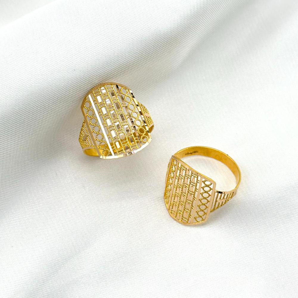 خاتم ذهب عيار 21 بتصميم أنيق وبحجم كبير يلفت النظر، وزنه 2.5 جرام. يعطيك حضور مختلف ويلبّي ذوقك إذا كنتِ تحبين القطع الواضحة والفخمة في نفس الوقت.