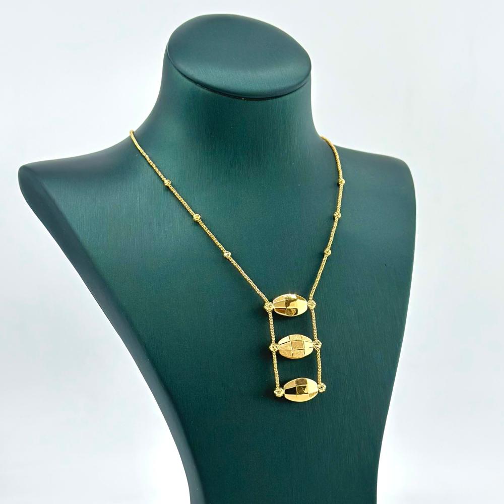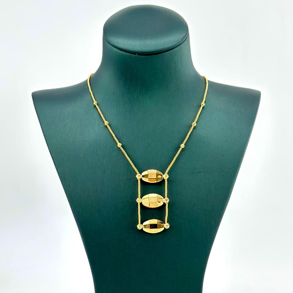 ارتدي عقد الذهب وكأنك تأمري العالم بجمالك. يتميز بقلادة جذابة ومتألقة تحمل في طياتها سحرًا لا يقاوم. سيأسر هذا العقد الأنظار ويثير إعجاب الجميع بتصميمه الفريد الذي يجمع بين الأناقة والجمال.